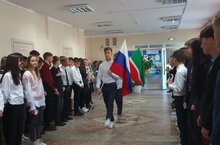 Начинаем новую неделю с торжественной линейки и поднятия Государственных флагов Российской Федерации и Республики Татарстан.
