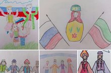 Ученики 5 классов, под руководством Ершовой Н.В. организовали выставку рисунков на тему: "Набережные Челны- многонациональный город".
