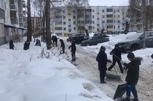 Ученики нашей школы приняли участие в городском зимнем субботнике по уборке снега.