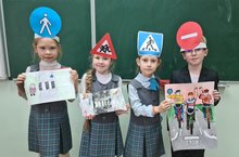 Ученики начальных классов провели классный час на тему :"Правила дорожного движения"