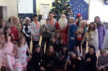 В новогодней театрализованной сценке приняли учатие ученик 4а,4в, 5,5б,7а,8а,9а,9б классов