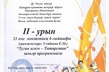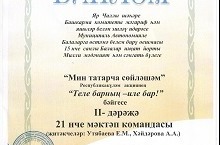 Поздравляем команды знатоков татарского языка (научный руководитель Хайдарова А.А., Утябаева Е.М. (объединение "Родничок"), Сайфеева Р.Н.), занявших II место в Республиканской акции "Мин татарча сойлэшэм " 12.04.2014