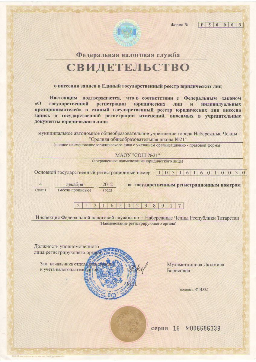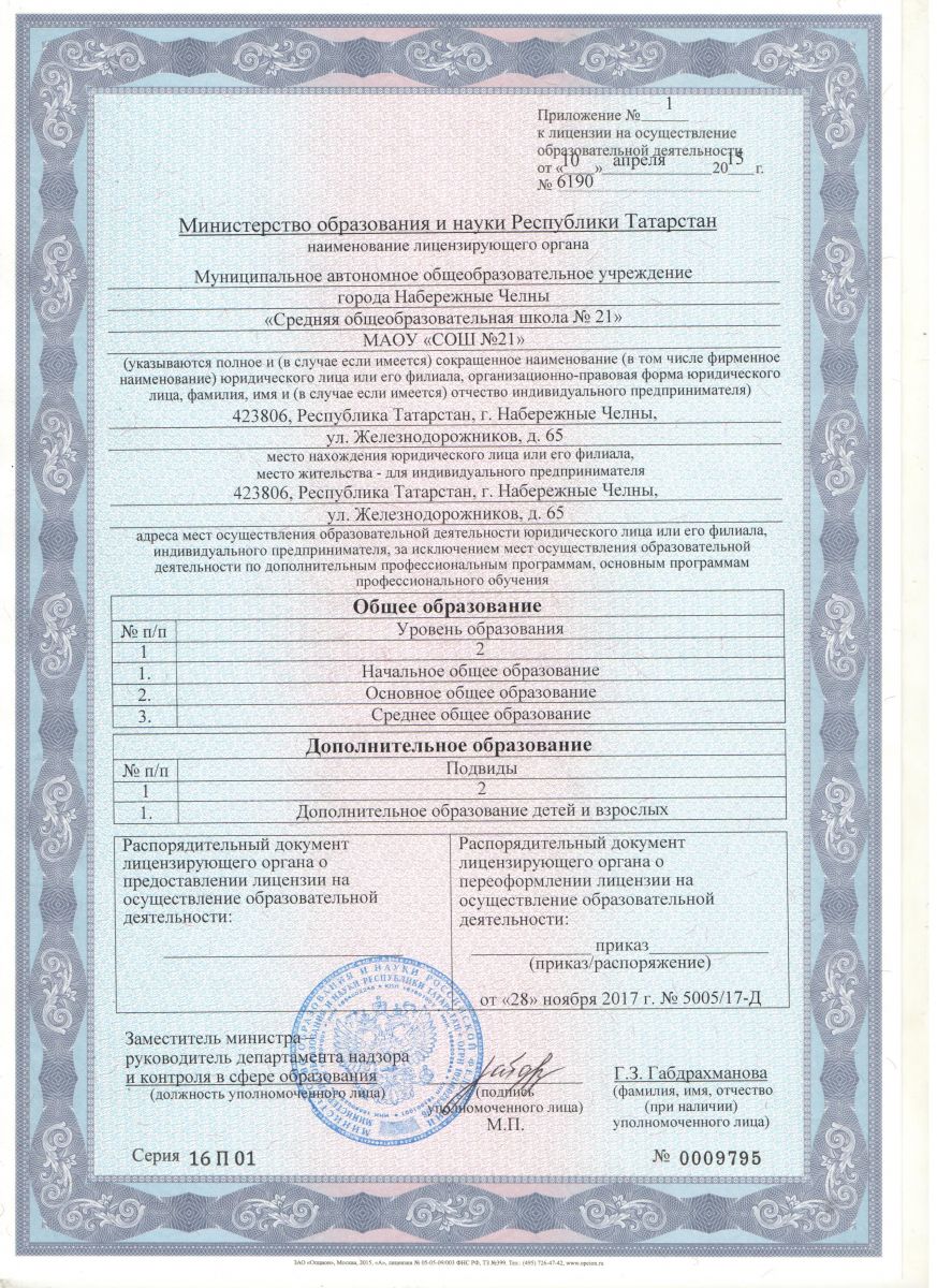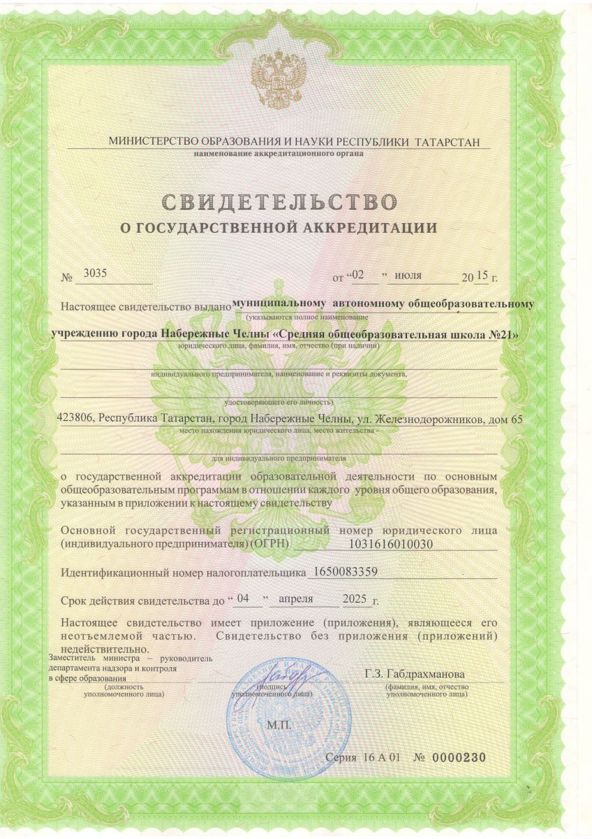 Муниципальное автономное общеобразовательное учреждение города Набережные Челны «Средняя общеобразовательная школа № 21»