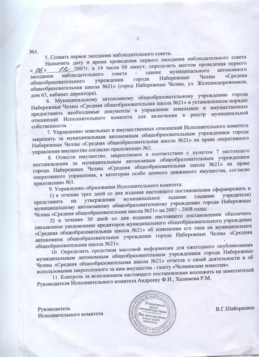 Постановление " О внесении изменений в Устав МАОУ "СОШ № 21"