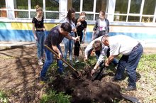 Совместно с директором школы Осиповым Н. И. председатель ППО Рахимов Р. М., учитель биологии Каримова Г. Р., ремонтник по обслуживаю здания Кичатов Р. О. и учащиеся 10а класса на школьном участке посадили яблони и груши.