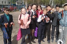 6 мая во дворе школы была проведена акция "Георгиевская ленточка" в рамка проекта "SаMоSтоятельные дети", во время которой жителям нашего микрорайона раздавались символы победы.