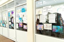 Юнармейский отряд школы организовал выставку рисунков начальных и средних классов, посвященную международному дню космонавтики и первому полету в космос Юрием Гагариным.