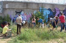 18 июля на набережной обучающиеся и педагоги нашей школы очищали от лишней растительности и мусора берег водоема.