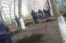И на территории нашей школы была организована посадка саженцев. Ученики 8В класса дружно приняли участие в озеленении города.