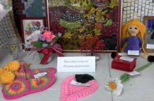В рамках проекта "Дружим семьями" в холле 1-го этажа организована выставка поделок "Руками родителей", приуроченная к международному дню семьи.