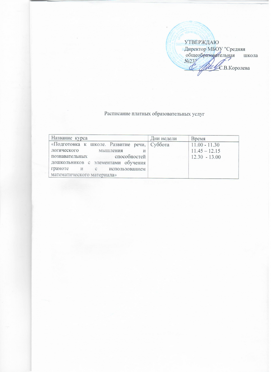 Расписание дополнительных образовательных услуг