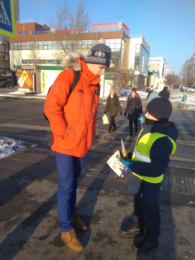 Опубликовано: 12.02.2018Сегодня ученики отряда ЮИД патрулировали на перекрестке пр.Вахитова и пр. Сююмбике. Юнные инспектора раздавали памятки ПДД и отмечали нарушения ПДД пешеходами.