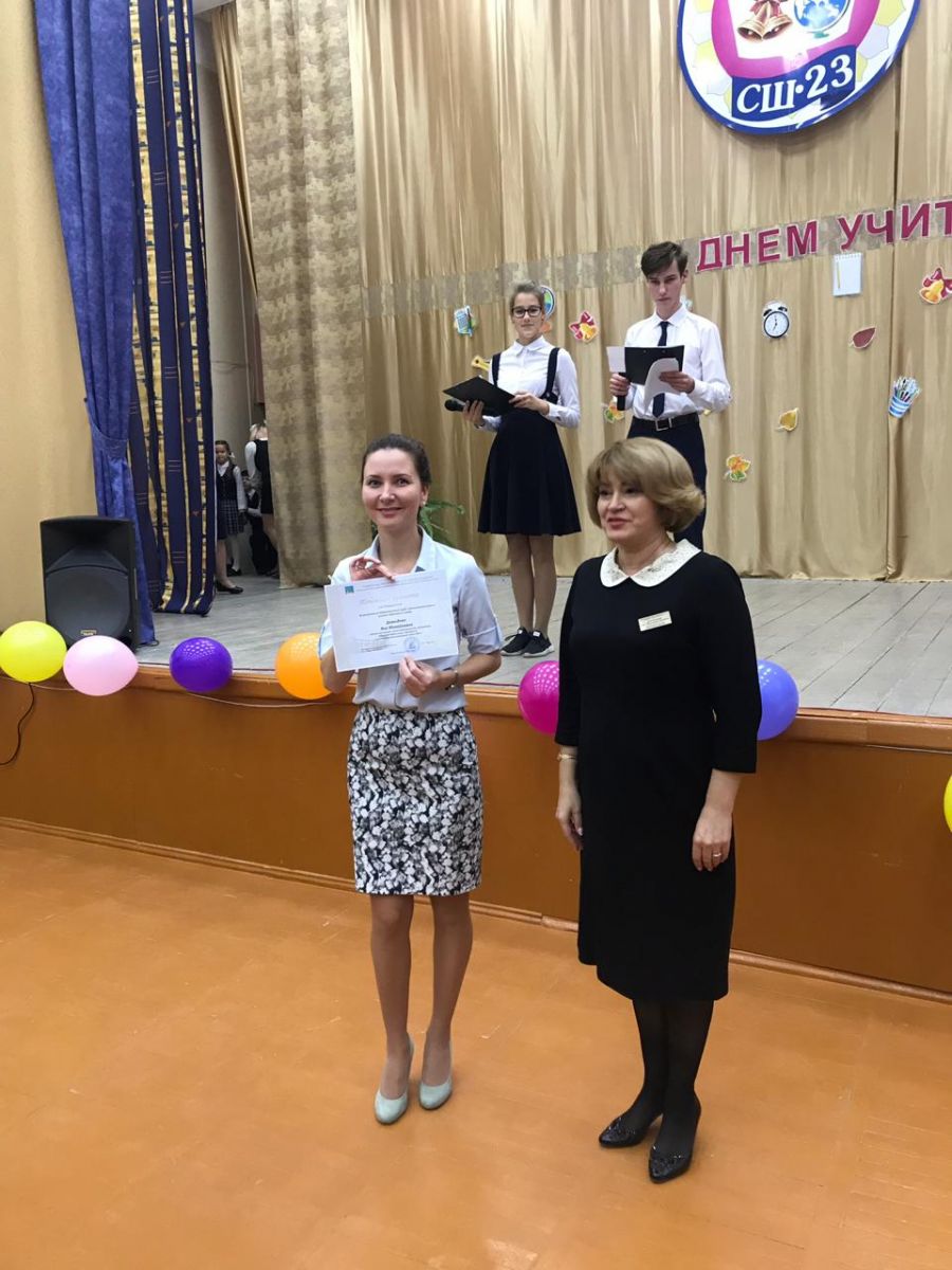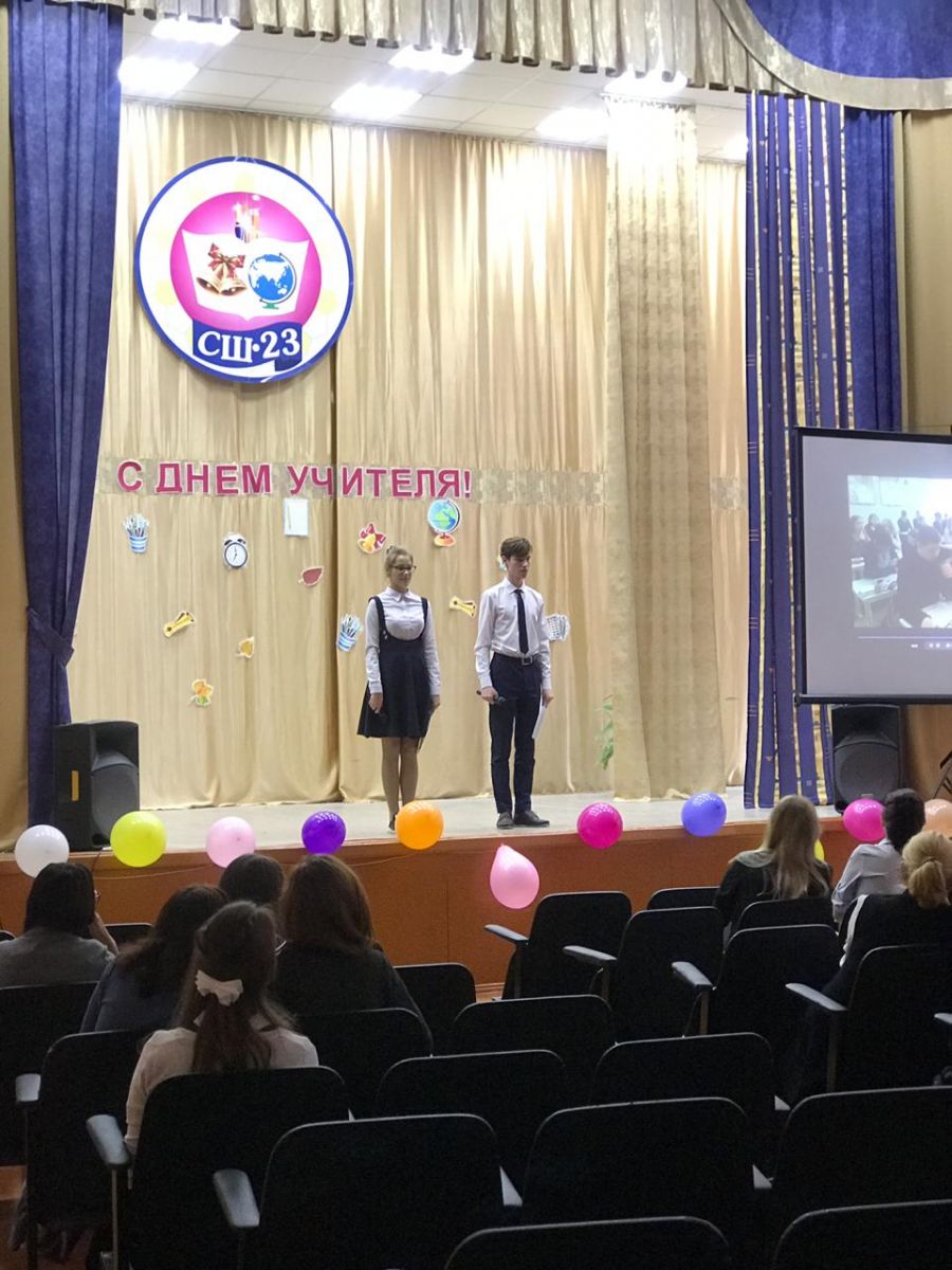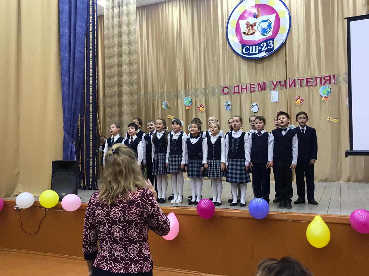 Опубликовано: 05.10.2018В нашей стране уже стало традицией отмечать день учителя 5 октября. И наша школа №23 не стала исключением. Накануне праздника прошел концерт с поздравлением педагогов школы. На мероприятии выступил хор 3А и 3Б классов. Также учителей порадовал вальсом выпускной 11А класс. Поздравления, песни и вручение грамот - мероприятие пролетело на одном дыхании.