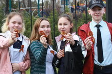 8.05.19 г. в Парке Победы члены школьного самоуправления раздавали Георгиевские ленточки прохожим и поздравляли с 74-ой годовщиной Победы в Великой Отечественной войне.