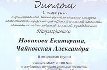 Учащиеся 10Б класса Новикова Катя и Чайковская Саша получили диплом I степени