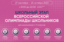 С 25 сентября по 28 октября 2023 года пройдет школьный этап всероссийской олимпиады школьников.