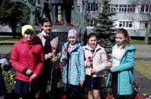 hәйкәлгә чәчәкләр салуда катнаштылар.