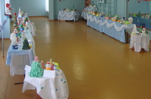 В школе открылась выставка новогодних игрушек, созданных руками детей и их родителей.