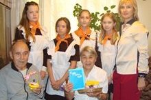 Тимуровский отряд 7А класса «Добрые сердца» принял активное участие в городской акции «Серебряный возраст». Ребята делали листовки, поздравительные открытки и поделки для пожилых людей в рамках собственной акции «От всей души». 1 -5 октября тимуровцы нашего отряда посещали пожилых людей нашего микрорайона, поздравляя с праздником. Девочки декламировали стихи, проигрывали интересную сценку, исполняли песню-поздравление. Ребята вручали им открытки, поделки, конфеты и домашние пироги. 3 октября тимуровцы посетили семью председателя совета ветеранов 26 комплекса Ситдикову Зарию Нургаеновну. Ребят очень радушно встретили, были рады музыкальному представлению, и в знак благодарности Зария Нургаеновна вручила тимуровцам 4 книги «Юные герои великой войны».