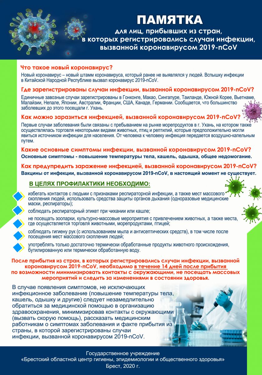 Памятка для лиц, прибывших из стран в которых зарегистрированы случаи заражения