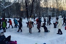 Весело и под музыку школьники проводят время на катке.