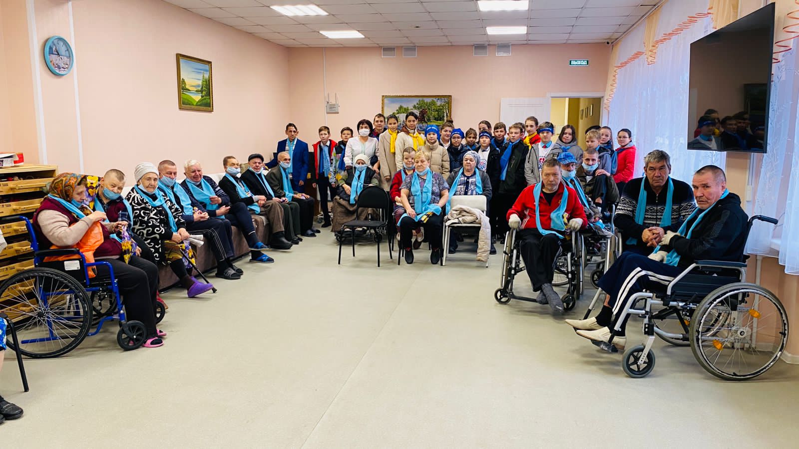 Сегодня в День старшего поколения тимуровские отряды школы, отряд "СМС-дети" и ШСУ поздравили жителей Дома-интерната для престарелых с праздником. Дети выступили перед жителями: читали стихи, танцевали и исполнилняли песни. В конце всем жителям были вручены небольшие подарки