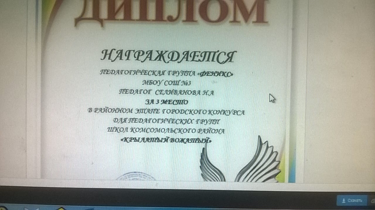 Поздравляем педагогическую группу "Феникс" МБОУ "СОШ №3" (педагог Селиванова Н.А.) за III место в районном этапе городского конкурса для педагогических групп школ Комсомольского района "Крылатый вожатый"