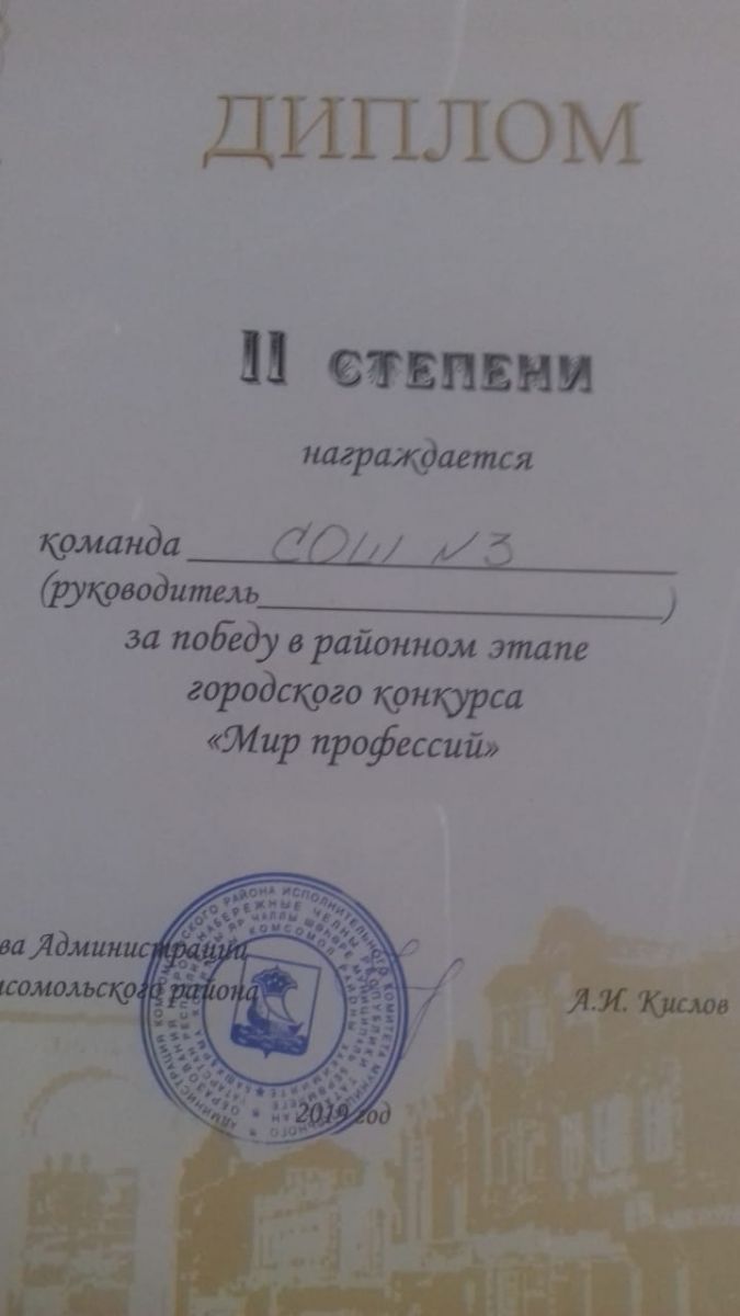 Поздравляем команду МБОУ "СОШ №3" за II место в районном этапе городского конкурса "Мир профессий"!