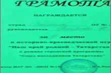 Поздравляем отряд "Стрела" (руководитель Петрова Ю.В.) занявшего 3 место в историко-краеведческой игре "Наш край родной _ Татарстан", в рамках городской программы "Союз наследников Татарстана"