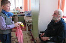Тимуровцы отряда «ЗАБОТА» МБОУ «СОШ №3» участвуя в акции «Так просто быть рядом», посетили 30 инвалидов дома-интерната по адресу: пос.ГЭС, 7/17. Ребята всем вручили подарки и пожелали инвалидам крепкого здоровья, хорошего настроения. -