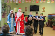 Тимуровцы отряда «Забота» вместе с Дедом Морозом и Снегурочкой поздравили жителей дома-интерната с наступающим Новым 2018 годом. В мешке Деда Мороза были новогодние открытки и ёлочки, сделанные руками учащихся школы. Все подарки тимуровцы вручили инвалидам и пожилым людям.