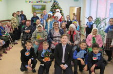 тимуровцы отряда «Забота» вместе с Дедом Морозом и Снегурочкой поздравили жителей дома-интерната с наступающим Новым 2018 годом. 23.12.2017