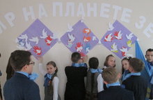 21.09.17 года в музее боевой славы был проведён урок мира, посвященный Международному Дню мира. Тимуровцы 5-х классов рассказали о трёх разных девочках из России, Японии и США, о их желании жить в мире без войн на земле. О теракте в г.Беслане рассказала руководитель музея Кузьминых В.А. На 2-м этаже школы ребята создали плакат, на котором разместили контуры ладошек и голубя, на крыльях которого написали свои пожелания о мире. На 1-м этаже разместили рисунки на тему «День Мира». На выставке представлено 25 рисунков от учащихся 2-8 кл., один рисунок от ученицы 11А кл. -