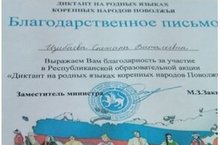 За участие в диктанте на марийском языке учитель родного языка и литературы Изибаева С.В. награждена Благодарственным письмом МО и Н РТ.