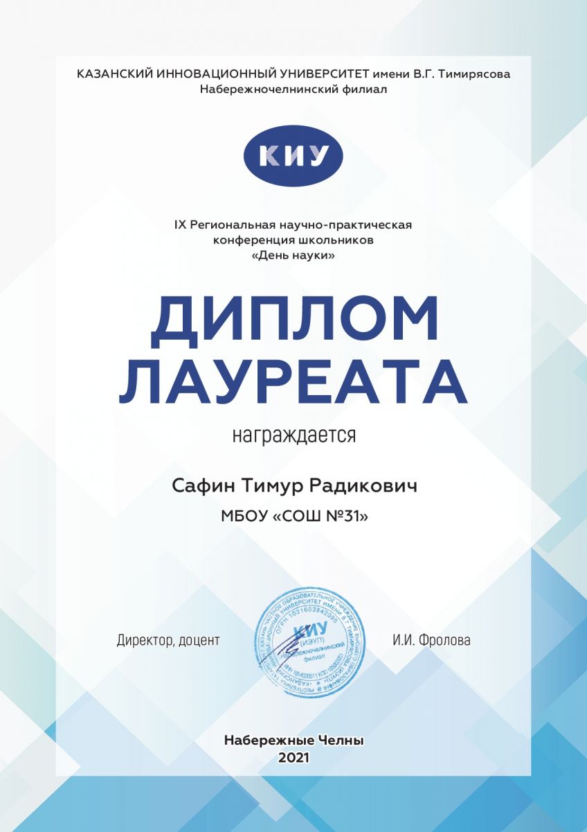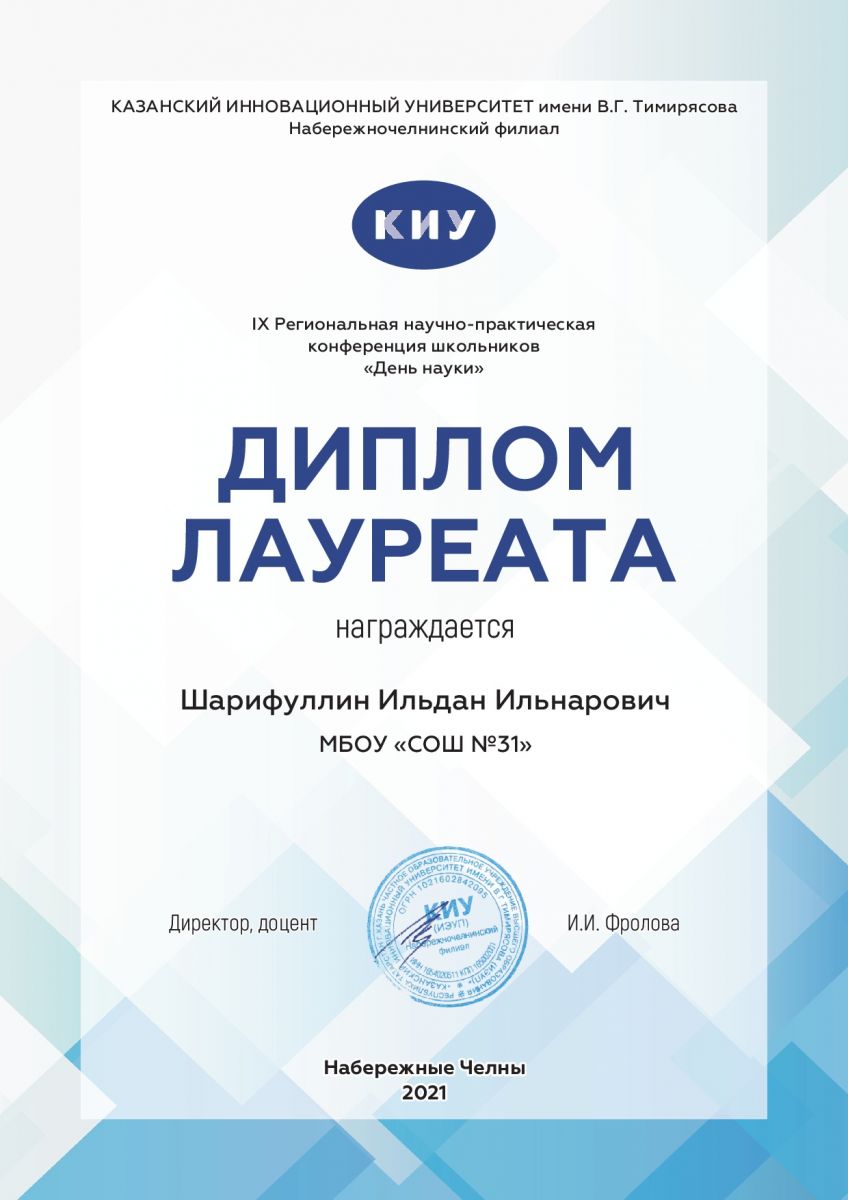 Муниципальное бюджетное общеобразовательное учреждение «Средняя общеобразовательная школа №31 с углубленным изучением отдельных предметов» г. Набережные Челны