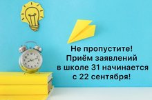 Прием заявлений в школе №31 начинается 22 сентября 2021 года.