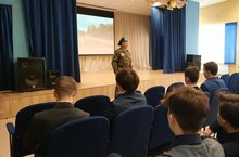 Перед учениками 8-9 классов выступили представители Общественной организации Патриотическое объединение ветеранов пограничной службы «Челны РУБЕЖ» Усеинов Ахияр Серверович и Ткачев Андрей Владимирович.