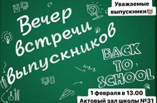 Приглашаем Вас на Вечер встречи который состоится 1 февраля 2020 года в актовом зале МБОУ СОШ №31