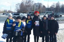 Лидеры отряда «Юный инспектор движения» приняли участие в рейде. На пересечении проспектов Мира и Беляева они раздавали буклеты по правилам дорожного движения.
