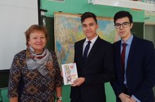 В честь празднования 100-летия ВЛКСМ ученики школы вручили открытки посвященные этой дате.
