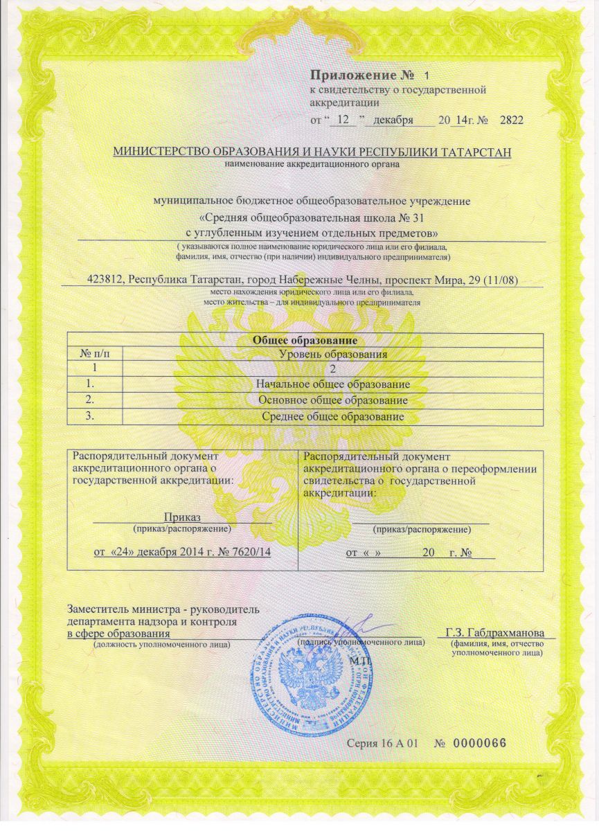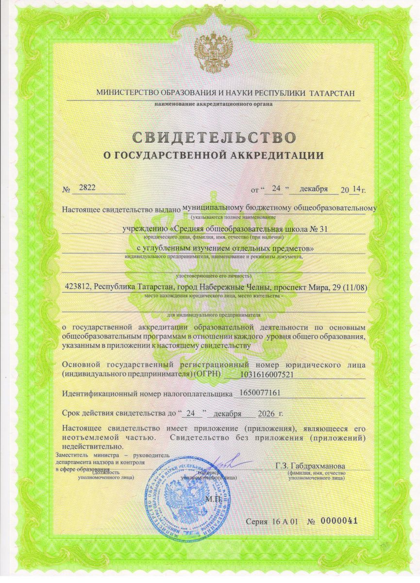 Муниципальное бюджетное общеобразовательное учреждение «Средняя общеобразовательная школа №31 с углубленным изучением отдельных предметов» г. Набережные Челны