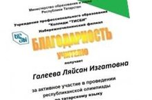 15 апрельдә татар теленнән республикакүләм олимпиада уздырылды. Мәктәптән катнашкан укучылар уңышлы чыгыш ясадылар. Котлыйбыз!