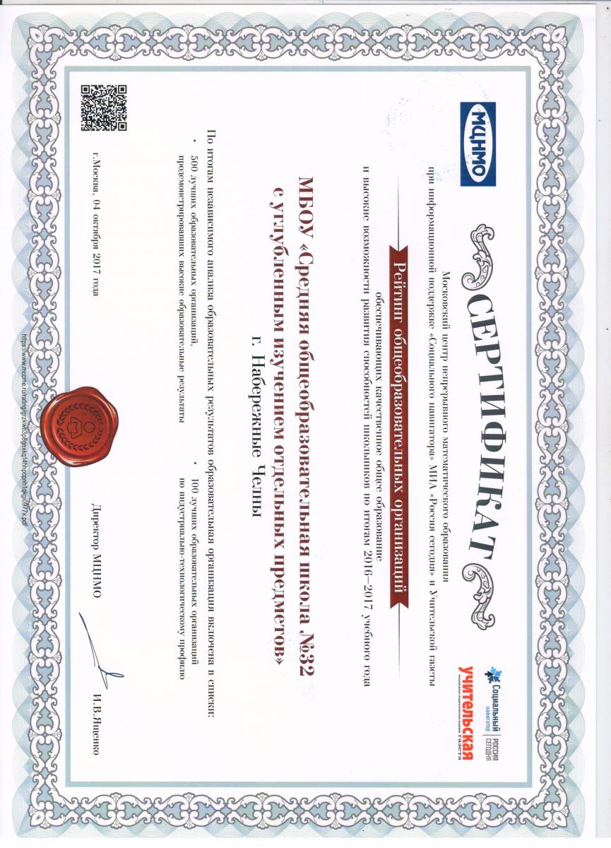 МБОУ «Средняя общеобразовательная школа №32 с углубленным изучением отдельных предметов» г. Набережные Челны