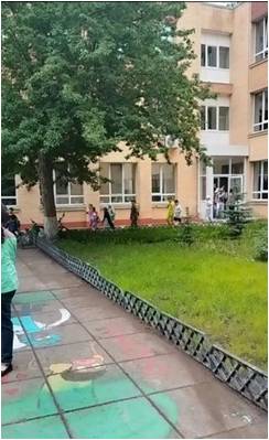 Дети из актового зала, библиотеки и 2 этажа старшего блока покинули здание школы через выход №6