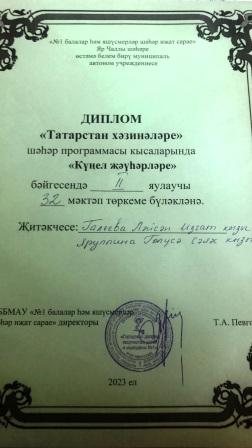 Шәһәр программаларында актив катнашкан мәктәп командасы тагын бер җиңү яулады. “Татарстан хәзинәләре” 6 нчы апрельдә “Күңел җәүһәрләре” бәйгесенә мәктәп командаларын чакырды. Мәктәп командасы 2 нче урын алып, диплом яулады. Булдырдыгыз, кызлар!