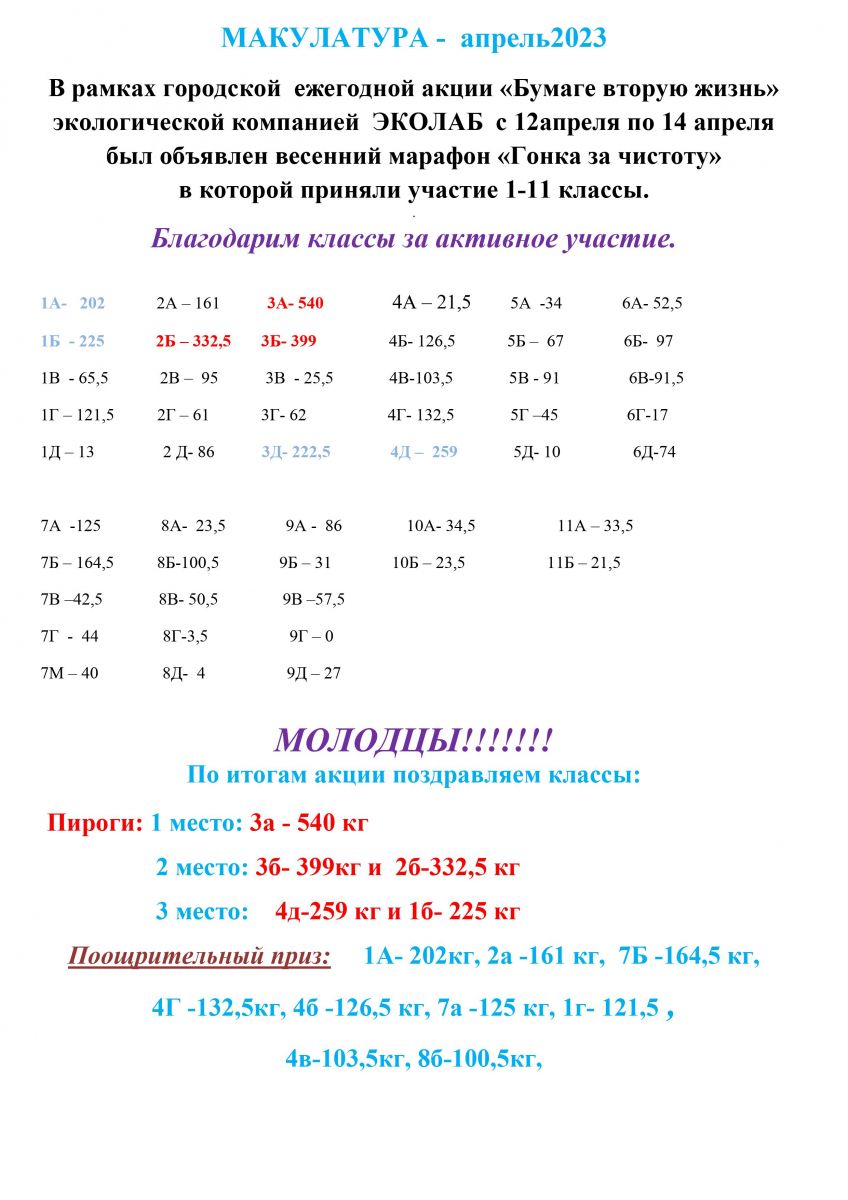 Итоги акции "Бумаге вторую жизнь"