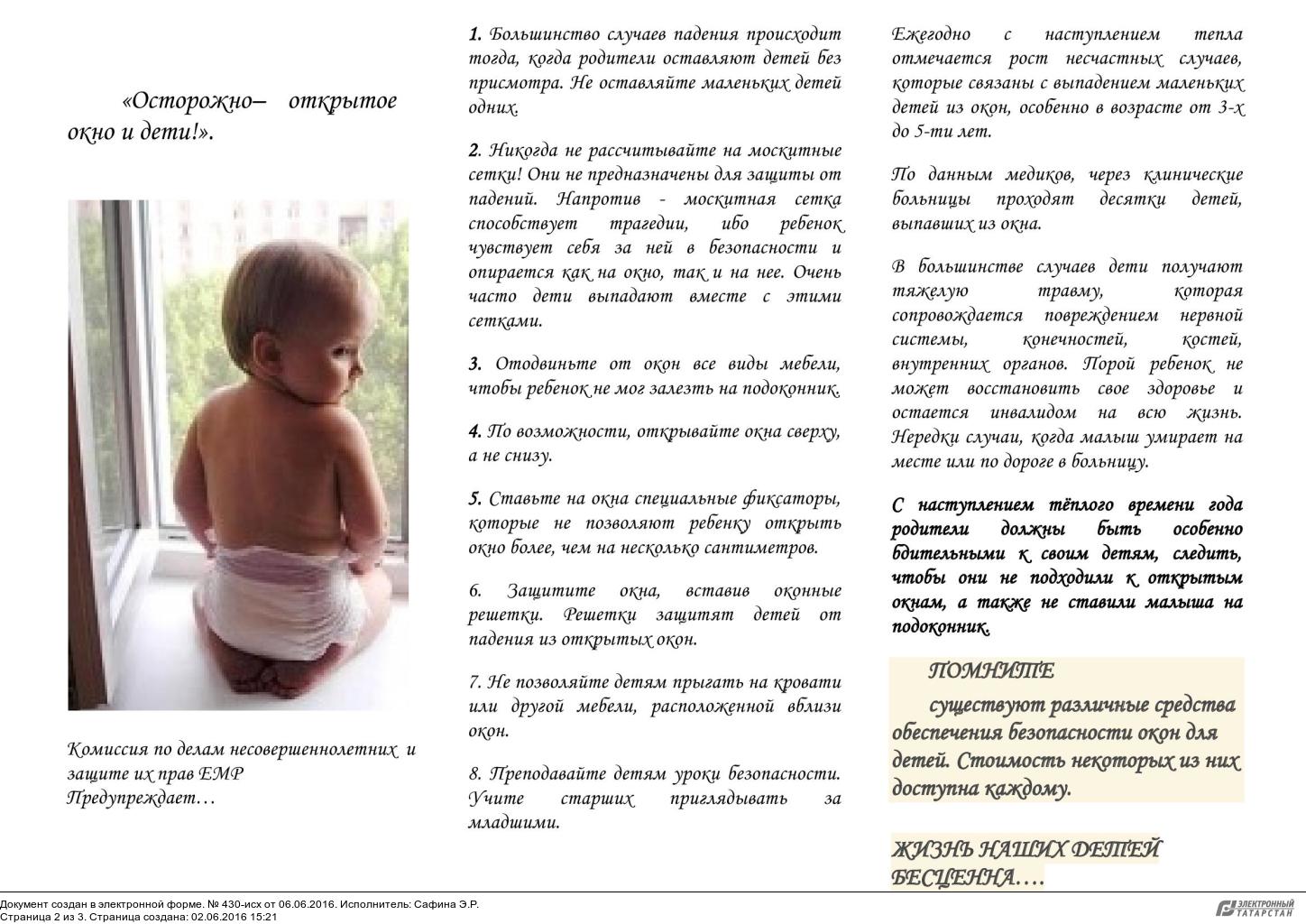 Памятка "Осторожно - открытое окно и дети!"