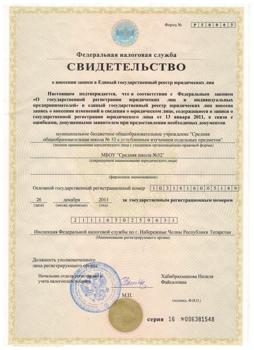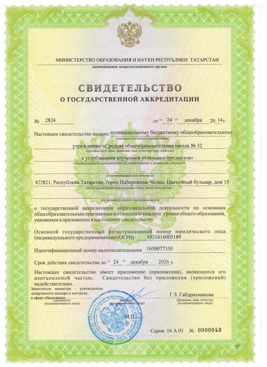 МБОУ «Средняя общеобразовательная школа №32 с углубленным изучением отдельных предметов» г. Набережные Челны