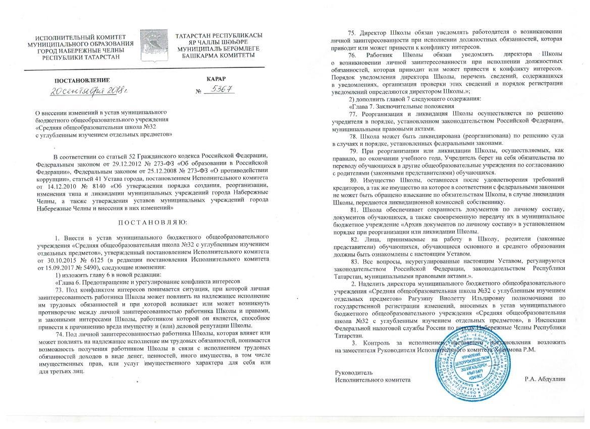 Постановление о внесении изменений в устав от 20.09.2018 года