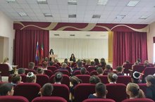 В актовом зале у 5-11 классов прошли классные часы, посвященные трагедии в 1 школе города Беслан.